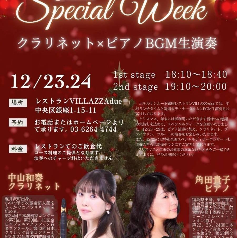 クラリネットとピアノの生演奏12月23日、24日